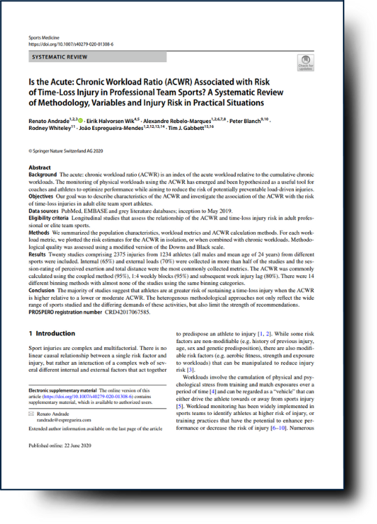 IS THE ACUTE: CHRONIC WORKLOAD RATIO (ACWR) ASSOCIATED WITH RISK OF TIME-LOSS INJURY IN PROFESSIONAL TEAM SPORTS? A SYSTEMATIC REVIEW OF METHODOLOGY, VARIABLES AND INJURY RISK …