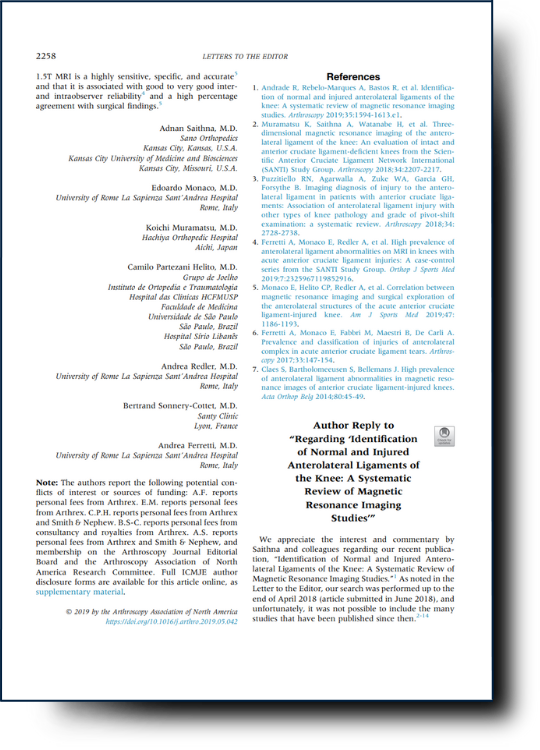 AUTHOR REPLY TO “REGARDING ‘IDENTIFICATION OF NORMAL AND INJURED ANTEROLATERAL LIGAMENTS OF THE KNEE: A SYSTEMATIC REVIEW OF MAGNETIC RESONANCE IMAGING STUDIES’”
