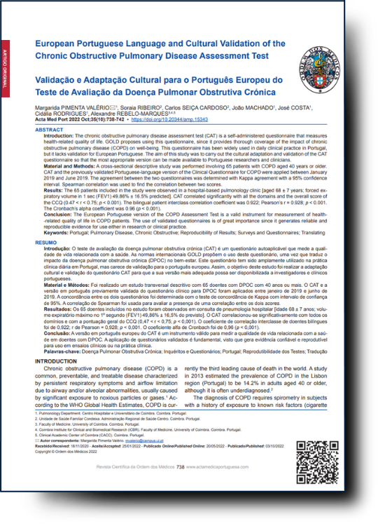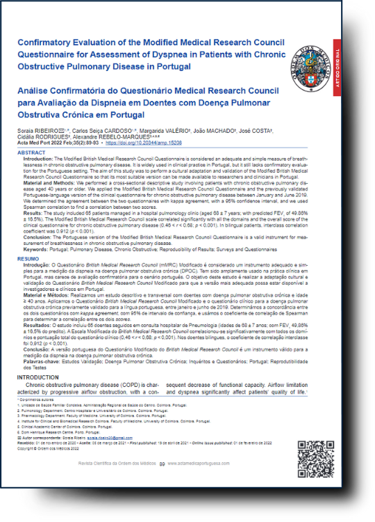 CONFIRMATORY EVALUATION OF THE MODIFIED MEDICAL RESEARCH COUNCIL QUESTIONNAIRE FOR ASSESSMENT OF DYSPNEA IN PATIENTS WITH CHRONIC OBSTRUCTIVE PULMONARY DISEASE IN PORTUGAL